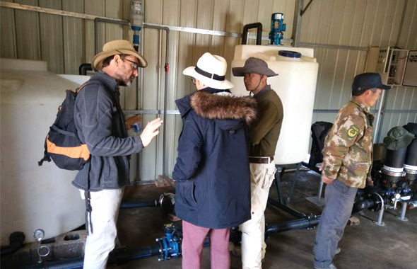 水肥一體化系統水肥間放線、底座澆筑、肥料桶施肥機就位、肥料桶 管道安裝、傳感器安裝、通水通電肥料測試直至培訓交接的全程>>